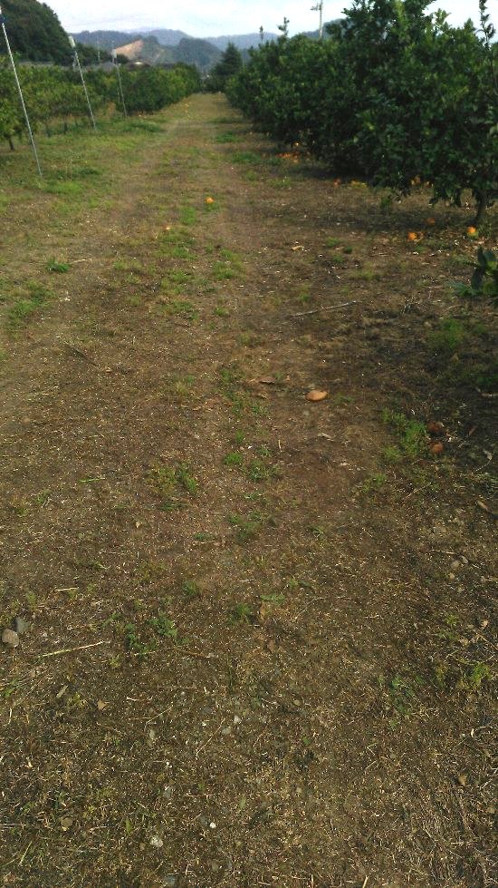 朝、農協主催の摘果講習会に娘と参加。部落内の園地で極早生、早生、デコポン、甘平、せとかの摘果について農協の技術指導員による講習を受けた。デコポンはお寺の前の我が畑で行った。しばらく見てなかったが実が大きくなっていて、なかなかいい出来。摘果講習が終ったあと、果樹改植事業の申し込みに農協へ行った。行司が谷の災害を受けて造成した紅マドンナの畑で、苗木代が半額補助、その他に未収益期間の支援金が出るもよう。ありがたい。災害関係とは別に6アールほどある極早生を早生に改植することにして申し込んだ。これも補助金が出る。書類の関係で吉田支所まで2往復する羽目になったが、補助金のためなら・・・。書類の提出が終ったあとは新田の草刈りの続き。午後4時ごろ終了。除草剤の場合、結果が出るのが2週間ぐらい後だが、草刈り機の場合、即結果が出るのでうれしい。30アールを丸二日で草刈り終了。平地の草刈りは楽で楽しい。