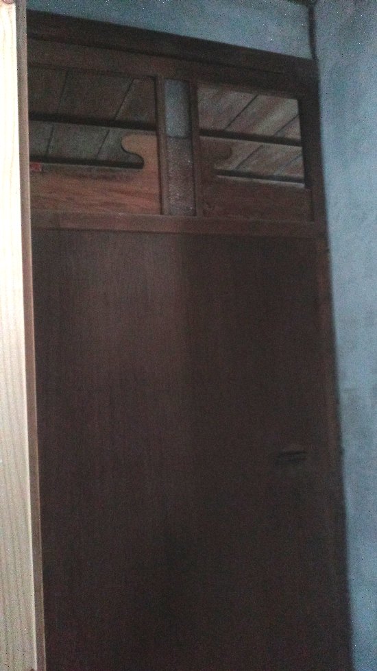 午後はお風呂のリフォームの続きで、柱や壁を雑巾+マイペットで拭き掃除。脱衣所や土間との間の戸も拭き掃除した。脱衣所との間の戸は、よく見ると1枚板のよう。元はかなりでかい木のはず。上側にはガラスが入っていたようだが真ん中だけ残っている。