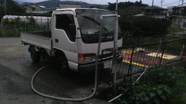 黒点病の第3回目の農薬散布が昨日終了。今日はいい天気になった。午前中は農薬散布に使ったタンクや、動噴、ホースなどを倉庫横の農業用水給水所で洗って片づけた。最後に愛車エルフもきれいにして終了。