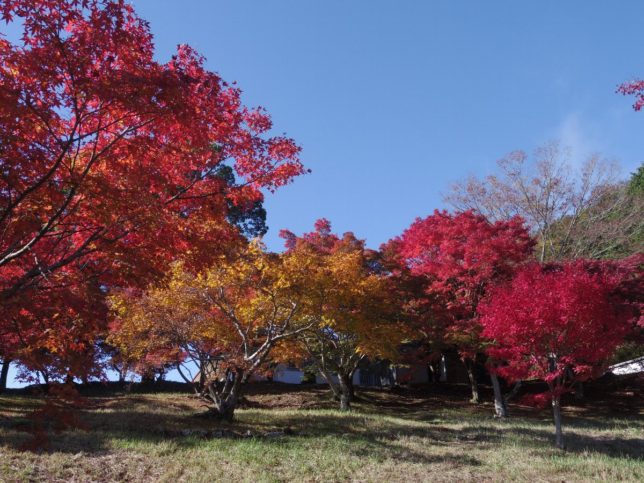 今日は勤労感謝の日。ミカン採りさんもいろいろ用事があったのでお休みに。絶好の行楽日和。紅葉もピークのようだ。級友二人は滑床渓谷に行ったはず。我が家は我が妹二人が来るので家でゆっくり。用事があって宇和まで行ったので宇和運動公園の紅葉を写真に撮ってきた。明日は雨の予報なのでミカン採りはお休みにした。