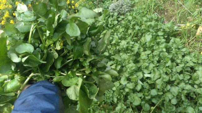 朝一番で紅ハッサクを出荷。製品、小玉、格外、加工と出荷し在庫はなくなった。デコポンの加工品も出荷した。帰りに遠回りして愛工房に寄り、ジュースのラベルを注文。明日できるそうだ。そのあと昨日蔵から出たごみを行司が谷で焼却した。帰りに行司が谷のクレソンを収穫。かなり繁茂してきている。移植元の成谷川の下流域は水害あとの浚渫作業で繁茂していたクレソンは根こそぎ掘り取られようとしている。そのうちここのクレソンが下流に流れていって再生するだろう。移植しておいてよかったかも。クレソンは生でももちろんおいしいが、炒めても、お浸しでもくせがなくておいしい。