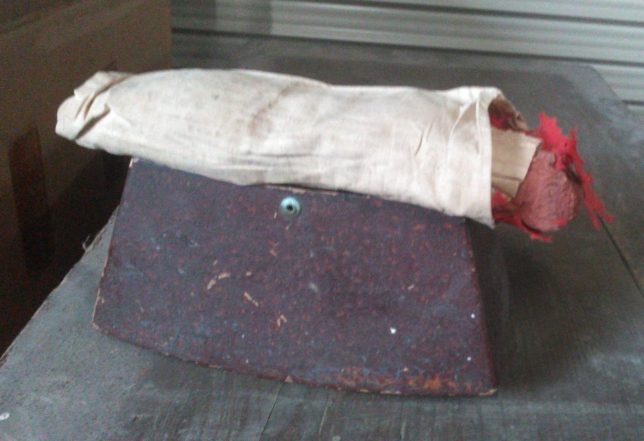 写真をもう一枚。昨日蔵から出てきた高枕だ。日本髪で寝る時に使う枕らしい。底にアールがついていて頭の動きに追従するようになっている。上の枕の部分はだいぶ傷んでいる。箱にある穴にひもを通して上の枕をしばりつけるようだ。下の箱の部分はまったく大丈夫だ。寝っ転がってテレビを見るにもちょうど良さそう。これも保存しておこう。