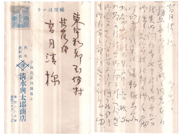 最後に蔵から出てきた昭和初期と思われる大伯父にきたハガキの写真を記録として載せておこう。いつか解読できるかな。