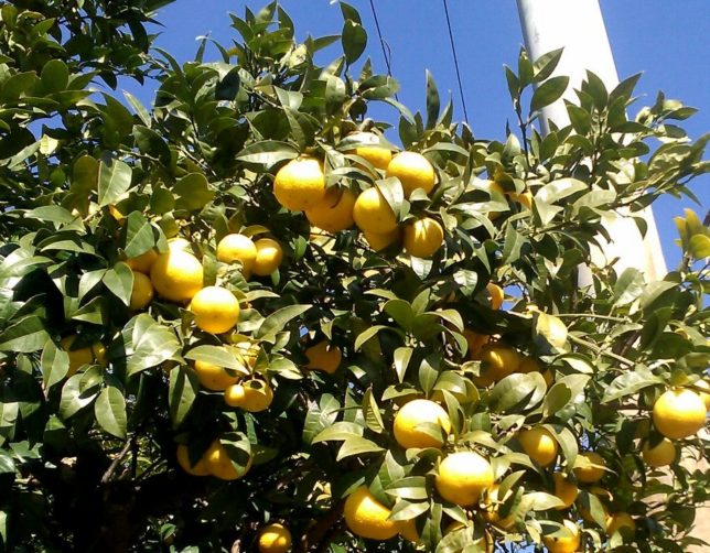 午前中は娘と黄金柑の収獲。行司が谷と和田地区に1本づつある。黄金柑は独特のいい匂いがあり、割りと高値で取引されているようだ。最近の品種の媛小春は黄金柑と清美を交配したものとか。昨年はすごくおいしかったが、今年は少し酸っぱい。合計でコンテナ4杯ぐらい収穫した。