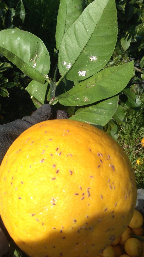 午前中いっぱいかかって宇和ゴールドの小玉の選果が終了。明日タロッコと宇和ゴールドを出荷してしまえばいったん倉庫が空になる。午後はまだ収穫していない宇和ゴールドの収獲。2時間ぐらい収穫してコンテナ20杯ほど収穫して終了。まだまだいっぱいあるのでミカン採りさんの応援をお願いするつもりだ。今日の写真はヤノネカイガラムシだ。去年は1本やられた木があったのだが、今年はかなり増えていて選果していてがっかりしてしまう。