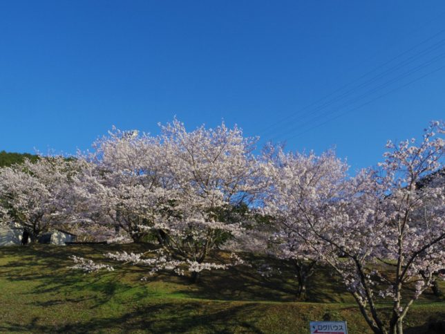 宇和運動公園は桜の木が多く圧巻。満開状態で、少し散り始めている木もある。どちらも花見客はちらほらだ。