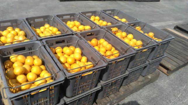 今日もいい天気。朝一番は先日用意していた搾汁用の宇和ゴールドを愛工房に持ち込むのにもう一度腐りをチェック。コンテナ20杯を持っていった。金曜日にジュースになったのを引き取れる。