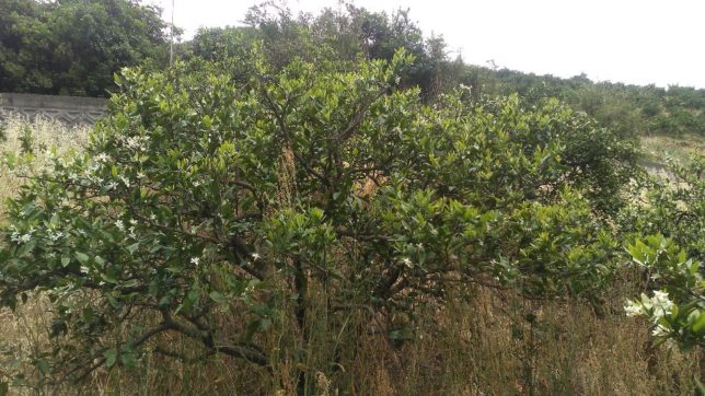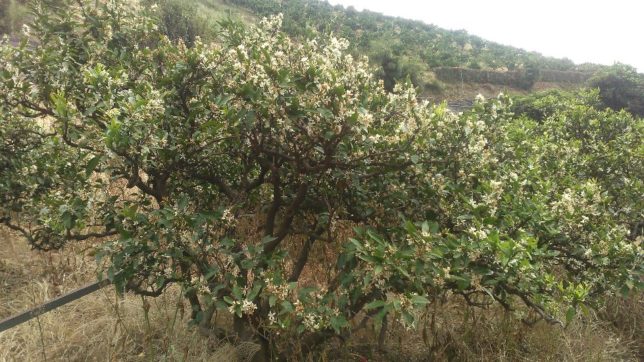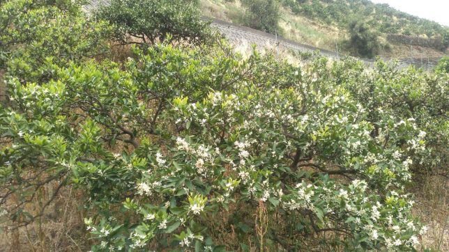ミカンの花が満開時期を迎えている。我が家はミカン畑のすぐ近くにあるので、今夜も柑橘系の匂いが漂っている。午前中はミカンの木の花のチェックで各園地を回ってきた。どの木にどれくらい花がついているかを確認して、来月やる摘果剤の散布をどの木にするかを決めていった。花がいっぱいついていて摘果剤をかけた方がいいのがこちらの木。花ばかりで、芽はほとんど出ていない。