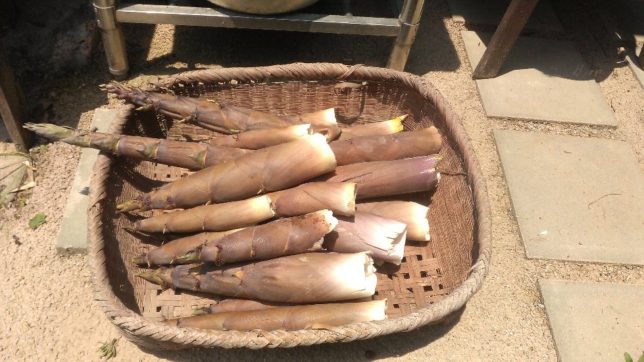 昨日の続きで、スプリンクラーの点検作業を夕方まで行った。結構塩ビパイプの破損が多い。設置してから数年たつところが多いので劣化が進んでいるのかも。モノレールの修理が終わってない行司が谷の東斜面を除いて点検終了。明日から農薬散布に移ることにした。点検に行った行司が谷の南西斜面と北西斜面に破竹が出ていたので収穫。南西斜面のほうは先日一回目の収獲をしたところだ。あれからだいぶ生えてきていてかなり背が高くなっているのが多かった。それらは折って捨てた。北西斜面のほうはまだ出始めたところのようだ。1、2週間の差がある。収穫した半分は近所の人に差し上げた。