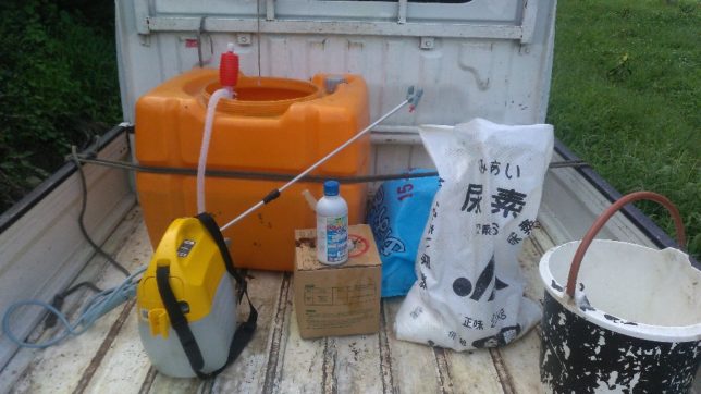 小さなタンクに作りおきした薬液を灯油のパコパコで散布機に移している。夕方終了。しかし、今年の苗木は育ちが良くない。かなりがっかりしている。