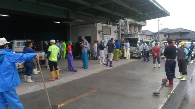 いきのいい若者から、こわそうなお年寄りまで集まってきている。こちらに帰って8年も経つとほぼ全員顔見知りで気心もしれているのだが、はじめてだと溶け込めにくいとは思う。雨もあがり、曇ってはいたが作業しやすい天気だった。