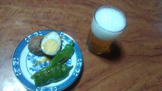 今日のビールのあては、万願寺唐辛子と肉巻きたまご。万願寺唐辛子は我が家の菜園で採れたのをオーブントースターで3分ほど焼いて、醤油をかけた。肉巻きたまごは吉田の”しんばし”で買ってきた。夕方5時すぎに行くと値引きしてくれる。