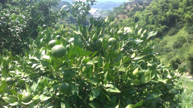 午前中は行司が谷の東斜面の甘平園地の摘果作業を。葛がだいぶはびこっているので引っぺがしながら摘果をした。実はまずまず生っている。去年よりは木も一段大きくなっているので順調にいけば収穫量は増えるはず。