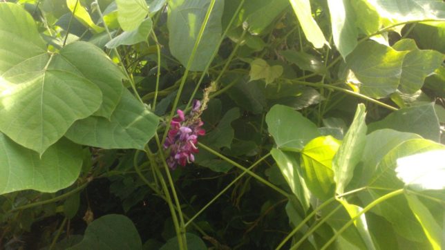 今日の一枚は葛の花。除草剤を撒きながら、葛がからみついているのをひっぺがしていて咲いていた。松野町出身の俳人芝不器男の代表句が