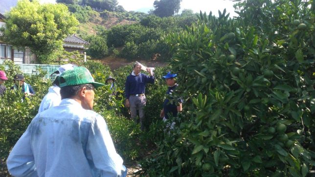 今日は午前中に摘果講習会があり娘と一緒に参加。極早生、早生、デコポン、甘平、ポンカンについて実際の木で講習を受けた。品種によって摘果のやり方もすこしずつ違う。デコポンは我が園地で実施。
