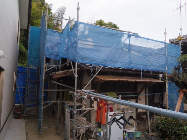 もう一枚は土間の解体用の足場。朝から職人さんが二人来てくみ上げていった。いよいよ明後日から解体開始だ。