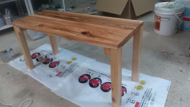 いつもなら機能と作業スピード優先で大雑把に作業を進めるのだが、今回はデザインに少しこだわってスッキリした形にした。余計な補強材を省くためには木工の精度が要求される。今回頑張ってみたが、高校の同級生のM師匠、N師匠の作品にはまだまだだ。最後に荏油を塗って仕上げた。