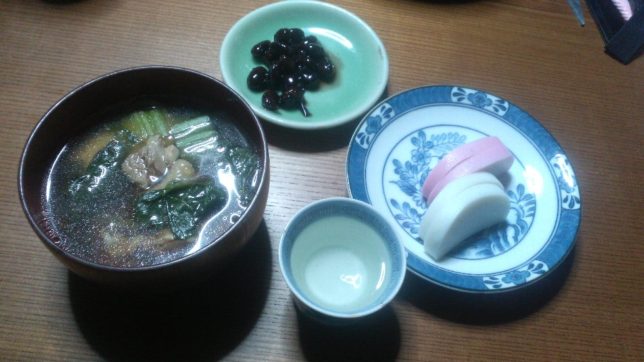 元旦の朝、いつものように目覚める。相変わらず寒い。朝ごはんは、お雑煮に黒豆、かまぼこ。そして、おちょこにお酒。