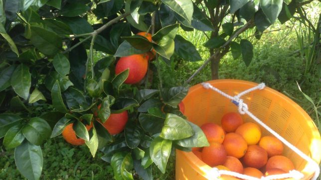 午前中、オヤジと娘は新田地区のモロ(ブラッドオレンジ)の収獲。奥方はデコポン包みをやってくれている。全部でコンテナ10杯ほど収穫。まだ苗木だが、年々収穫量は増えている。食べるとあまり甘くはないが、ブラッドオレンジの独特の風味があってあとを引くおいしさだと思う。