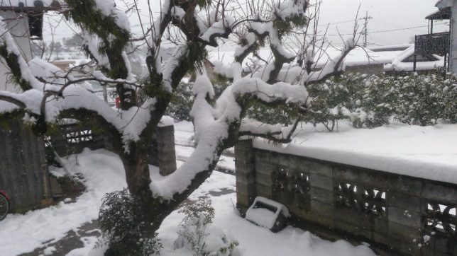 朝起きると、かなり雪が積もっていた。愛媛の南予地方はけっこう雪が積もるところだ。昨年暮れと、1月と今シーズンは3回目の積雪だ。今回が一番積雪量は多いかも。車の上など30cmちかく積もった。大陸からの北西の風が日本海を抜ける時に水分を含んで、関門海峡付近をすりぬけて四国の西斜面で雪を降らせるのだ。朝一番の仕事は、デイサービスに出かける母上のために雪かきだ。
