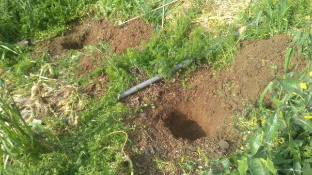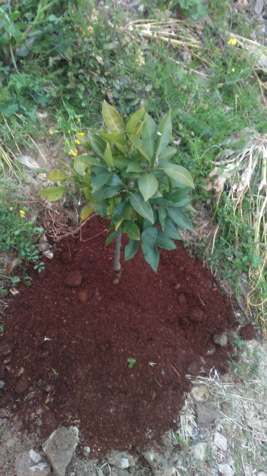 今年も昨年と同じように苗木を植えてしまえば、結局同じよう発育不良になる可能性がある。苗木の育ちが悪かった原因は、水不足と石ころだらけの土質だとして、手を打つことに。まず、土質についてはすぐ横の水害を受けなかった20号園地の土を採取しておいて、植える時にスコップ2杯ぐらい使うことにした。石ころも極力取り除いた。水不足については植えたあとの潅水をこまめにやるのと、植えたあとすぐに牛糞堆肥を撒くことにした。牛糞の保水効果に期待している。昨年は鶏糞の堆肥を植えてからだいぶたってから撒いたが、その間に雨が降らなくて根がかわいてしまった可能性がある。牛糞のほうが保水効果が高いはず。根を乾かさないようにするのが重要のようだ。元気な苗木に植え替えたのがこちら。