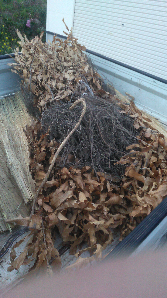 午後は、頼んでいたクヌギ苗を購入しに鬼北町の南予森林組合へ。道の駅の森の三角帽子の隣にある。200本購入。行司が谷の東斜面などに植えるためだ。行司が谷の東斜面の南側半分は早生や極早生の園地だが、もともと傾斜がきついのと、土質がざらざらなところ。水害以降、ミカンの木がどんどん枯れてきていることもあり、徐々に廃園にするつもりだ。そのまま放っておくと、ゴマダラカミキリムシの温床になったり、土砂崩れがしやすくなったりするので育ちの早いクヌギを植えることにした。こちらが購入した苗木だ。
