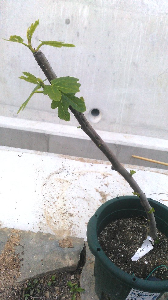今日の一枚は、イチジクの苗木。品種はドーフィンで、一番ポピュラーのようだ。夏と秋と2回収穫できるそうだ。苗木は農協に昨年頼んでいて、暮れごろ来たのを鉢植えにしておいた。芽が出て順調に葉っぱになってきている。植えるところも決まった。これからが楽しみだ。