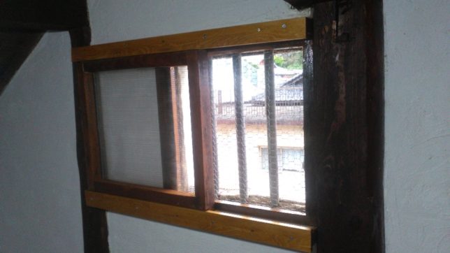 昨日作った旧蔵の2階の金網と引き戸を取り付けたのがこちらだ。まあ合格としておこう。