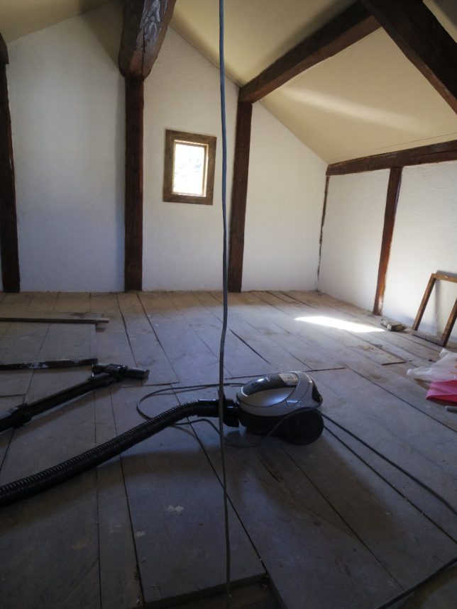 そのあとはDIYの続き。旧蔵の2階もいままで敷いていたブルーシートを撤去して掃除機をかけた。
