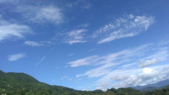 いまのところ出来はまずまず。潰瘍病になっている木が結構あるので、消毒が必要だ。ここは東向き斜面なので午後は日影になって快適だ。頑張って6時ごろまで作業して終了させた。今日の一枚はこの園地からの空。右のほうに鬼が城連峰も見える。左のほうの出っ張りは高森山。標高634m。東京スカイツリーと一緒だ。