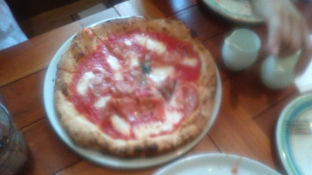 お昼は松野のY君も呼んで、ロッジの隣のピザのSelvaggioで食事。一年ぶりだが、ここのピザは美味しい。写真はピンボケだった。