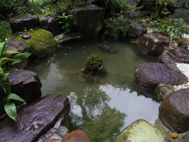 昨夜から雨が降り始めて、今日の昼間もほとんど降っていた。待望の雨。風もたいしたことはなく、災害に会われた方には申し訳ないがこちらでは恵の雨となった。これで最悪の旱魃の被害はなくなったと思う。あと9月の長雨までにもう一回降ってくれれば今年はなんとかしのげるだろう。降雨量は設置している降雨計だと150mmぐらいだった。中庭の池だが、水を抜いていたのが満杯になっているのには驚いた。