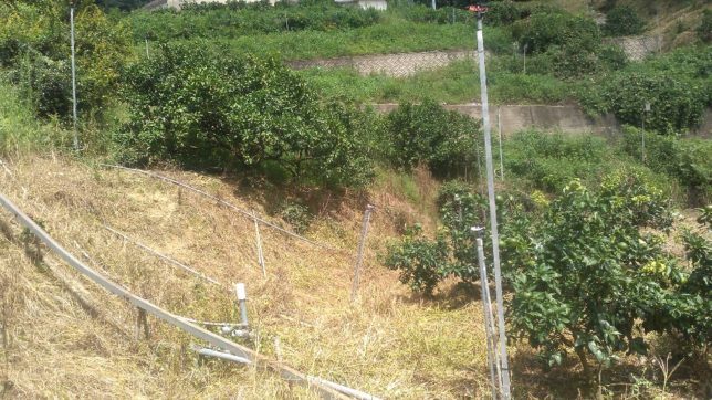 朝から天気はまずまず。雨の心配はなさそう。午前中は昨日の続きで、行司が谷北西部への配管作業。そのほかに放っておいたスプリンクラー関係の宿題も一緒に片づけた。ここが現場。