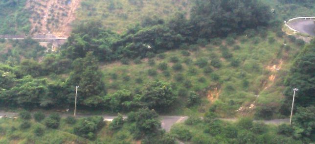 今日は曇り。昨日に続いて除草剤散布。9月に入り、少し熱さも和らいだようだ。今日はシオカラ地区の早生園地だ。午前中頑張って終了。曇り空だったがやっぱり汗はかく。除草剤散布エクササイズで少し体重が減ってきているようだ。少し嬉しい。写真は今日の現場のシオカラ地区の早生園地だ。右のほうに水害の被害がそのまま残っている。