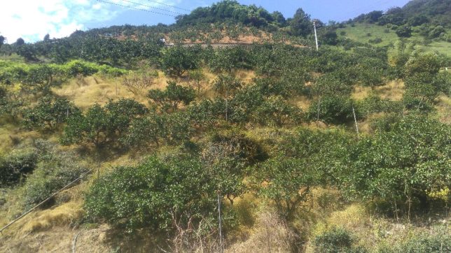 今日も摘果作業だ。午前中は行司が谷の西南園地の続き。前に切った竹などが転がっているのでそれも片づけた。ここは表年で生りはいいのだが、木が弱手tいる感じがする。ここ数年のゴマダラカミキリムシ対策不足を反省。