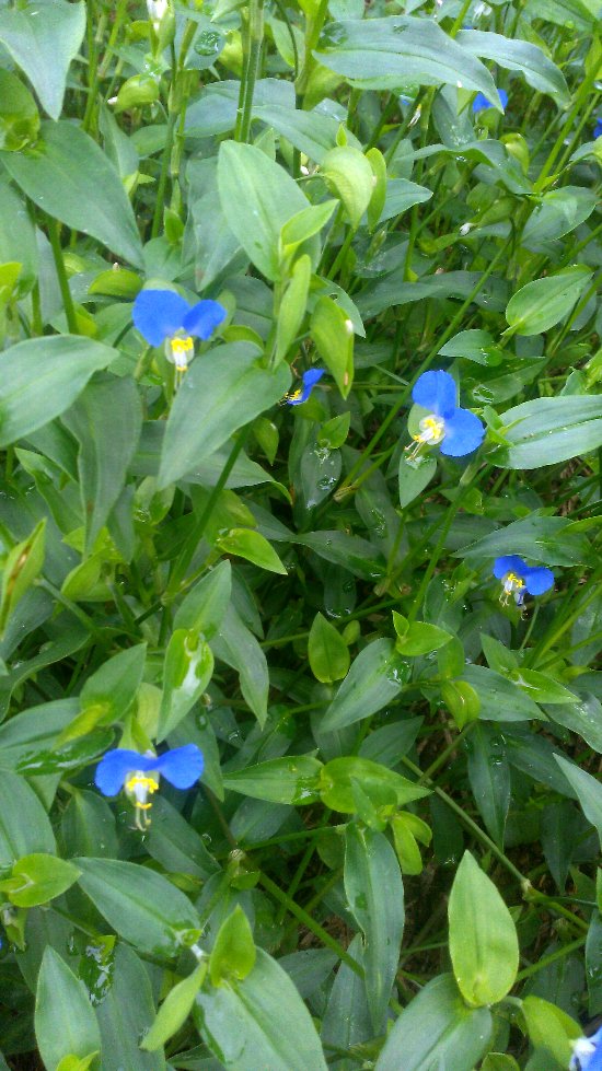 朝一番は、お墓参り。草を引いてしきびと線香をあげてきた。途中の山道で、ツユクサの青が鮮やかだったので一枚。いつみてもツユクサの花は昆虫の顔みたいだ。