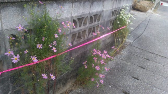 午後は今日もお休み。なにしろ暑い。引き出しつきワゴンの工作など。今日の一枚はコスモス。娘が家の塀の外に種を撒いているのが花をつけてきた。放っておくと道路に倒れこむのでテープで支えている。薄紅のコスモスと、白いコスモス。もう一種類濃いワイン色のコスモスもある。