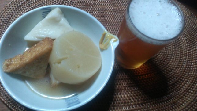 今日のビールのあてというか晩御飯はおでん。大根が美味しい季節だ。