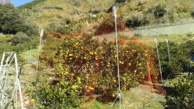 午後は行司が谷の甘平園地の草刈りだ。ここは去年、ハクビシンにやられたところ。ヒトデdeでんでんの効果か、今のところ甘平は無事だ。甘平は新聞では八幡浜地区などそろそろ収穫が始まっている。我が園地でも色づきはいい。心配なのでいつもより早いのだが、明日収穫することにした。コセンダングサ(くっつき虫)が結構生えているので収穫前に草刈りした。