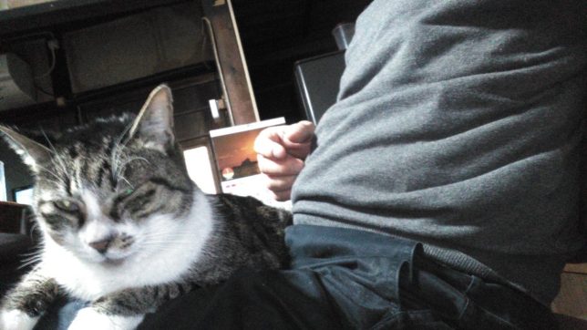 今日の一枚は、珍しくオヤジの膝に乗ってきたジジ君。テト君とは兄弟なのだが、風貌も性格も全く違う。