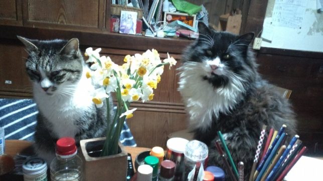 丸一日梅の木と格闘して疲れた。今日の一枚はテト君とジジ君のツーショット。食卓の上に上がり込んでいる。少し甘やかしすぎかも。