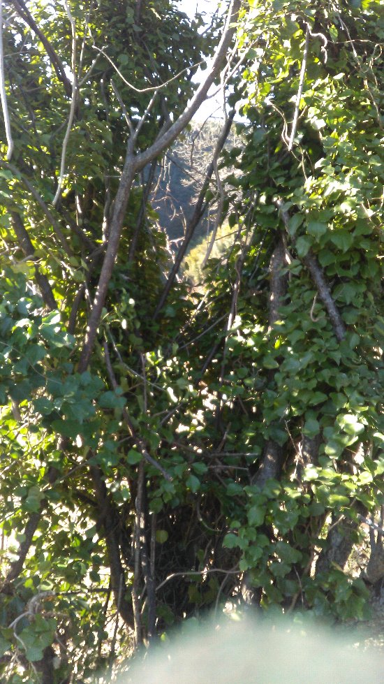 今日もいい天気だ。昨日に続いて梅林の剪定だ。6mぐらいの大木で、しかも枝が好き勝手に伸びている。樹上には葛がからまっている。幹には寄生植物が繁茂している。こいつらを引っぱがして、樹高を2mぐらいに切り下げて、切った枝を処理してと、一日やって2本半終了。8本の梅の木のうち、5本半終了。幹に寄生していたキヅタ(木蔦)がこちら。つるがからまっていて、つるからいっぱい細い根が幹にくいこんでいる。たぶん栄養を摂取しているとおもわれる。