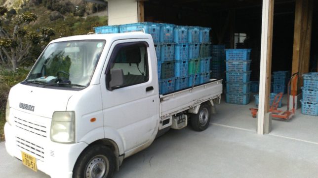 今日はおだやかないい天気だった。朝から出荷作業。まずは紅ハッサクと黄金柑を出荷。そのあとデコポンだ。午後三時ごろまでかかって2.5トンほど出荷した。これで倉庫はすっからかんになった。