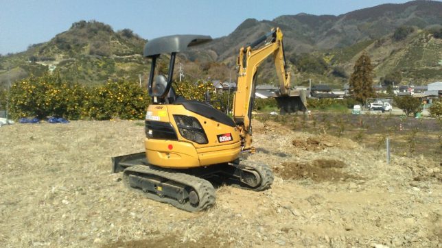 今日も奥方と娘は宇和ゴールドの収獲だ。夕方までやって園地の三分の二が終了した。オヤジは運搬作業の他に、同じ新田地区でユンボで穴掘りと、川の堤防の復旧工事で一時的に移していたモロ(ブラッドオレンジ)を元に戻す作業を行った。こちらが今日のユンボだ。玉津柑橘倶楽部から借りた。