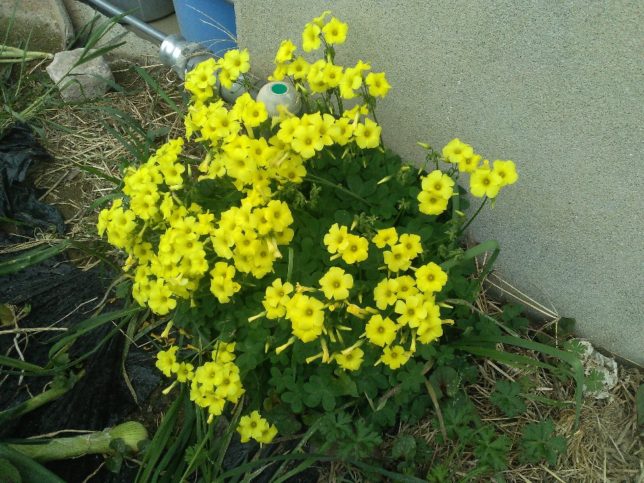 今日の一枚はカタバミの花。下の倉庫の横に咲いていた。ハート型の葉っぱはクローバーに似ているが、花は全く違う。