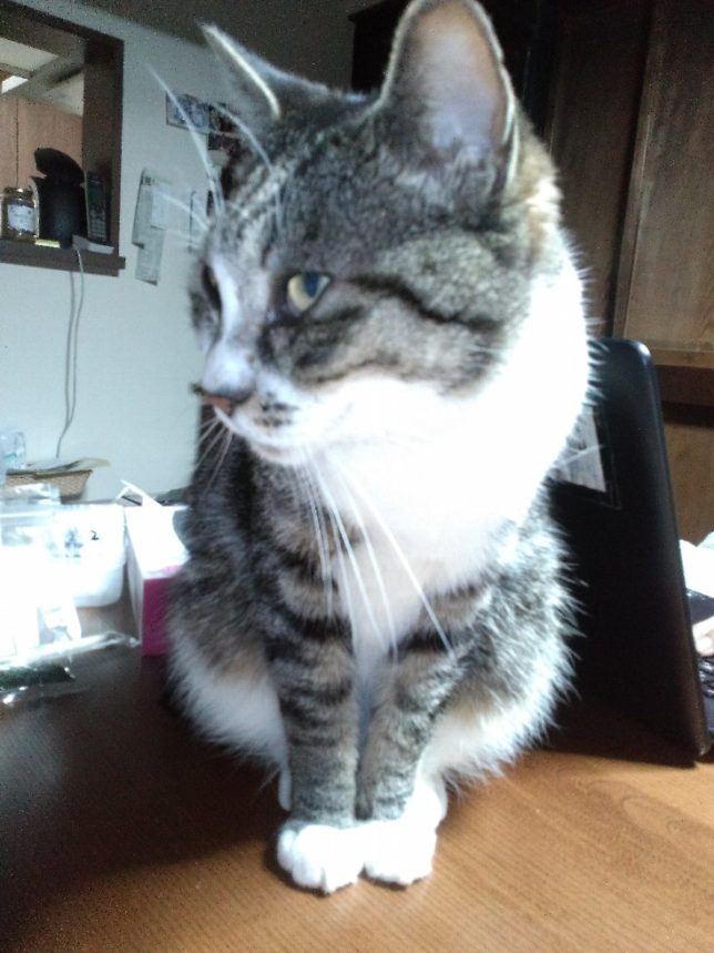 今日の一枚はジジ君。白いソックスを履いて、三つ指をついている。