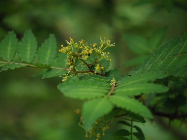 今日の一枚は山椒の花。以前我が家の裏庭には大きな山椒の木があって毎年実をつけていたのだが水害で土砂に埋まってしまった。その後、3本ほどいつのまにか苗木が育ってきて、そのうち1本は2mを超えるくらいになってきた。今年は初めて花を咲かせた。それがこちら。