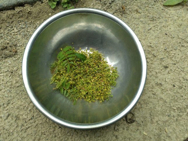 山椒は雄と雌があってこれは雄のいわゆる花山椒というやつのようだ。実は残念ながらつかない。花を集めたのがこちら。花は散り始めていて、少し収穫が遅かったかな。