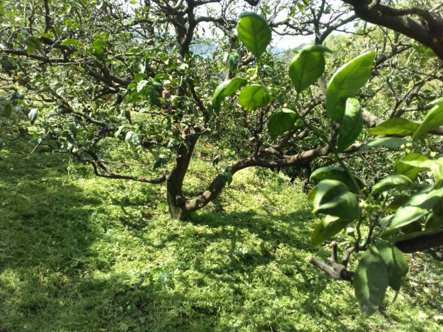 今日はいい天気になった。午前中は宮ノ谷地区の草刈りだ。肥料まきが終わったので、今月の重点項目で残るのは除草と液肥散布。宮ノ谷地区に先日肥料を撒きにいったのだがイヌムギやノゲシなどが繁茂していて大変なことになっていた。除草剤を撒く前にざっと草刈りをすることにした。刈ったあとがこちら。緑のグラデーションがきれいな季節になったと思う。