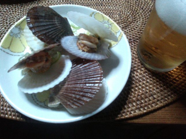 今日のビールのあては妹が北海道からもらったベビーホタテのおすそ分け。奥方が酒蒸しにしてくれた。